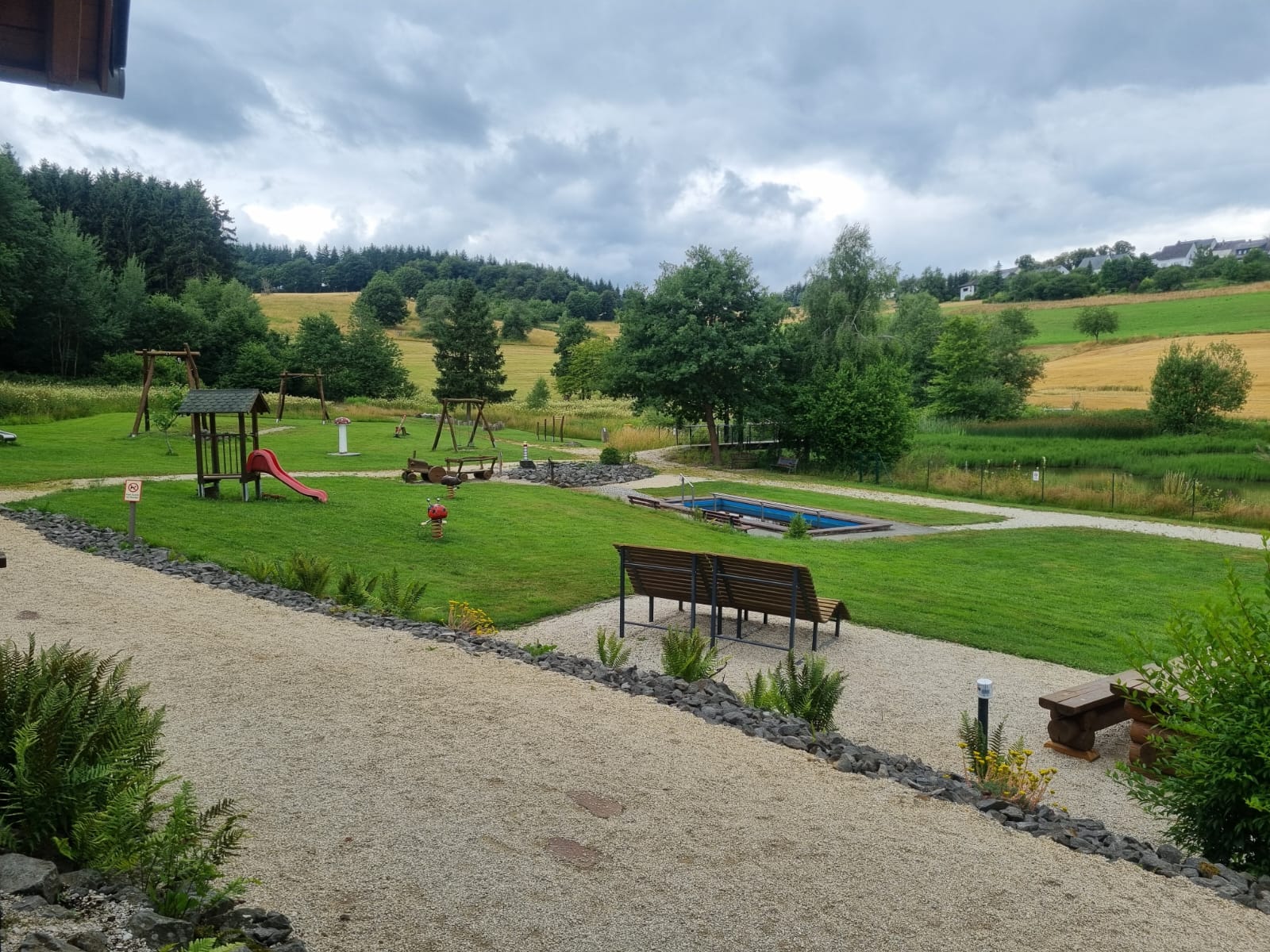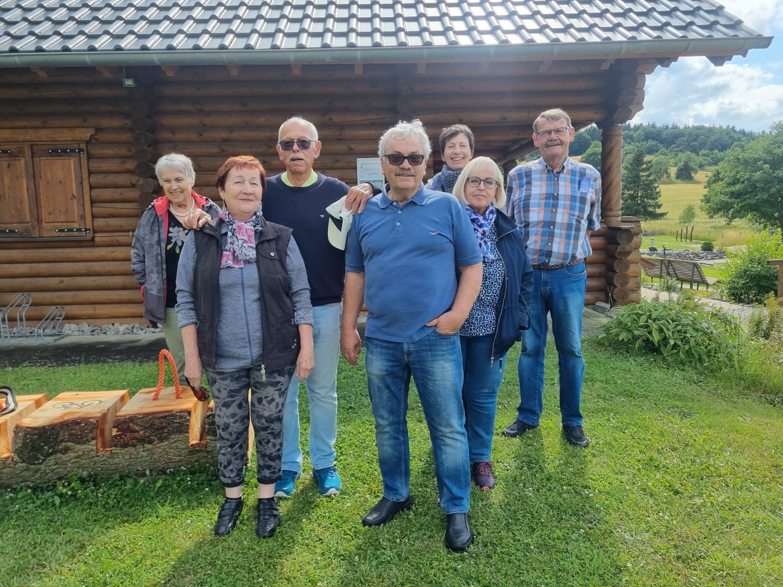 Der Sommermonat Juli glänzte bei unserer Fahrt am Dienstag, 08.07.2025 mit dem Bürgerbus nicht mit seinen Attributen, sondern war ziemlich durchwachsen. Dadurch legten wir nach unserer Ankunft im Barfußpark in Grenderich im Schutz der überdachen Terrasse des Blockhauses zuerst einmal eine Kaffeepause ein und verspeisten die mitgebrachten Muffins.
