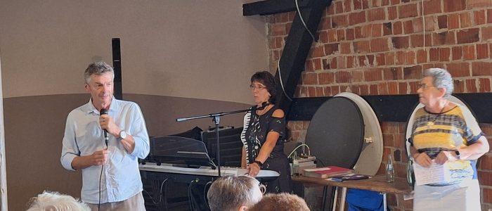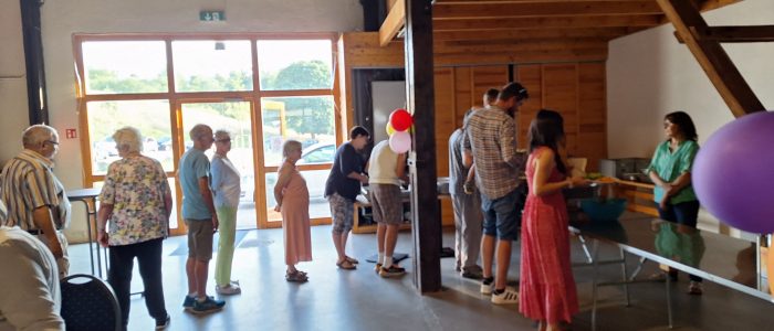 Trotz der lähmenden Hitze kamen zahlreiche Mitglieder am 14. August d.J. zum Sommerfest von „Hallo Nachbar“ in die wohltemperierte Domänenscheune am Simmersee.